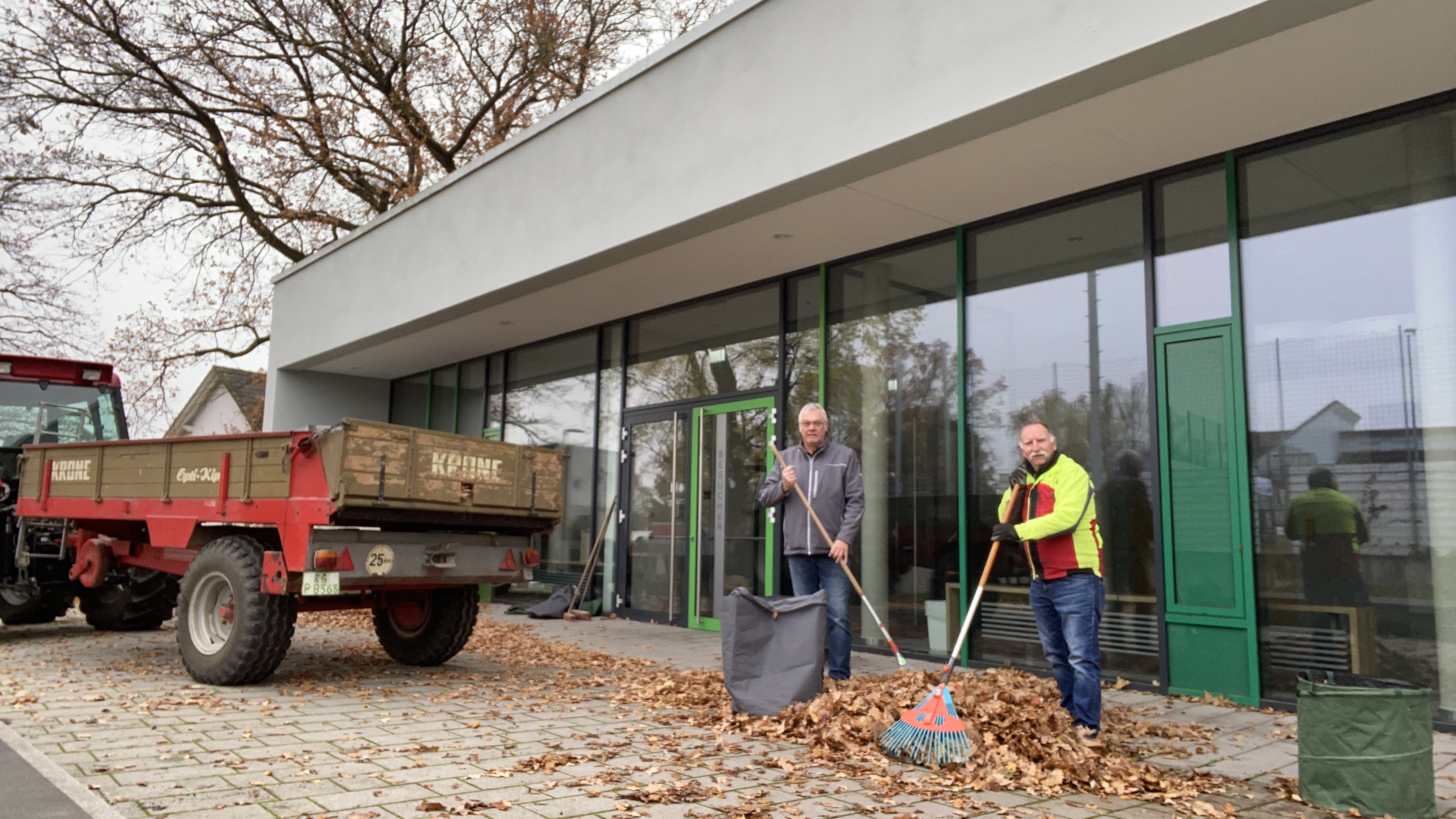 Bergeweise Herbslaub verteilte sich vor der Sporthalle, auf den Gehwegen und sogar im Foyer der Halle. Es bestand für die Sportler und Besucher eine erhöhte Rutschgefahr die eingedämmt werden musste. Zwei Ehrenamtliche der HSG Baunatal (beide wollten namenlich nicht genannt werden - wir nennen sie Mal Herr G. und Herr O. ) erkannten die möglichen Gefahren und legten mit ihrem privaten Eqiupment Hand an. Nach gut zwei Stunden akribischen und schweißtreibenden Blätterhäufeln war endlich der Weg für alle Hallenbesucher wieder frei.