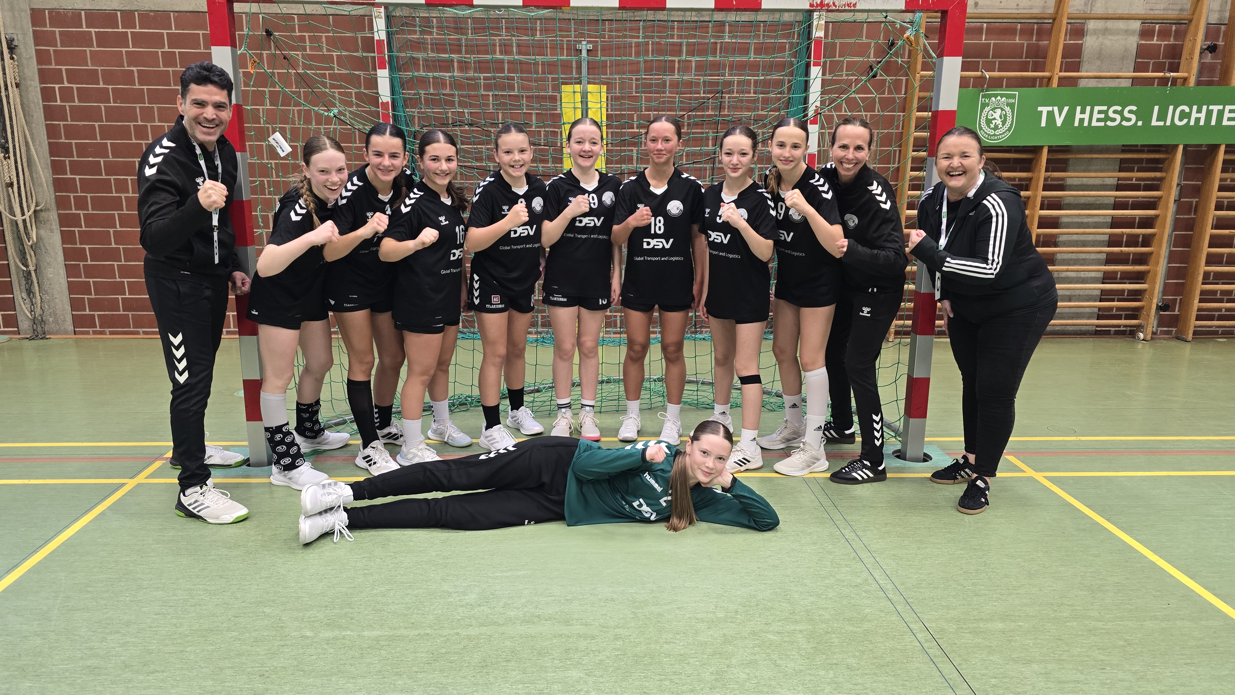 Letztes Wochenende ging die Reise zur JSG Hessisch Lichtenau. Mit einem etwas schmaleren Kader als in den bisherigen Spielen hatte sich unser Team vorgenommen, die nächsten Auswärtspunkte einzufahren. Wie sich schnell zeigte, war dies für die Mädels keine große Herausforderung, denn in der 17. Minute stand es schon 4:10 für uns. Die Abwehr stand wie bisher gut zusammen und durch schöne Anspiele sowie ein gutes Auge für die Mitspielerinnen konnten ganz einfach Tore erzielt werden. So ging das Team mit einer 9:17-Führung in die Pause. Mit dem Wiederanpfiff nahm das Spiel etwas an Geschwindigkeit auf, was man in dieser Partie zuvor gänzlich vermisst hatte. Der Gastgeber und der Schiri konnten sich allerdings nur bedingt auf unser schnelleres Spiel einlassen. Dies führte zwar gelegentlich zu etwas Durcheinander bei der JSG und beim Schiri, jedoch war nun endlich mehr Schnelligkeit im Spiel. Tempogegenstöße und schnellere Anspiele nach vorne waren jetzt mal möglich, um zügig Tore zu werfen. Da die Führung konstant sehr deutlich war, durften die Mädchen auf Anweisung der Trainer in ihren Positionen rotieren und sich auf ihren neuen Positionen im Spielbetrieb erproben. Eine sehr gute Übung, um sie flexibel auf verschiedenen Wurfpositionen zu halten. Ein souveräner Auswärtssieg mit einem 19:33 wurde am Ende eingefahren. Mit vier Siegen in Folge stehen unsere Mädchen weiterhin an der Spitze der Tabelle. Als nächstes kommt die HSG Wesertal zu uns in die Halle, was für einen unserer Neuzugänge ein besonderes Aufeinandertreffen werden wird.