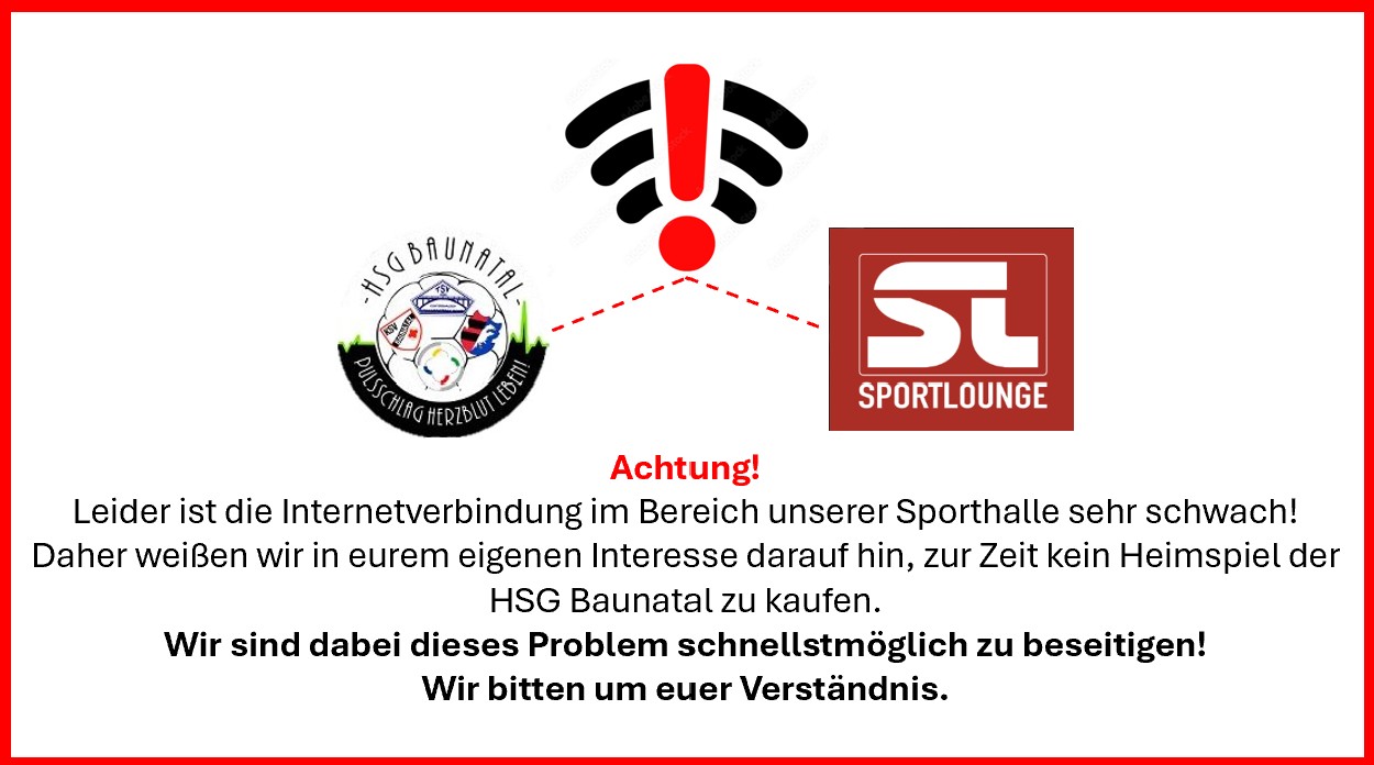 Schwache Internetverbindung! Es wird empfohlen kein Heimspiel der HSG Baunatal über Sportlounge zu kaufen!