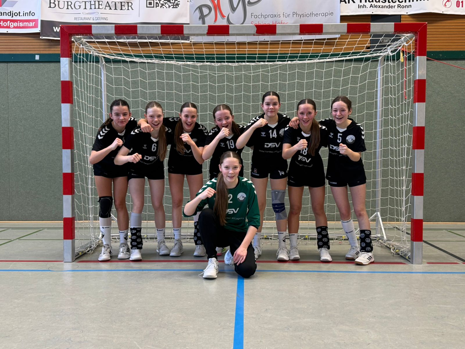 Nach dem erfolgreichem Staffelsieg letzte Woche ging es dieses Wochenende zur HSG Hofgeismar/Grebenstein. Von der Spielerzahl etwas dezimiert und gesundheitlich angeschlagen, waren unsere Mädchen trotzdem gut gestimmt, zwei weitere Punkte nach Hause zu holen. Da die letzten beiden Begegnungen gegen Hofgeismar/Grebenstein deutlich für unser Team ausgingen, traten unsere Mädchen auch dieses Mal mit viel Selbstbewusstsein auf. Von Beginn an wurde konzentriert gespielt, wodurch es unserer Mannschaft schnell gelang in Führung zu gehen. Die Gastgeberinnen dagegen hatten durch unsere aggressive 3:3-Abwehr große Probleme, ins Spiel zu finden. Somit wurde der Vorsprung sukzessive ausgebaut. Die gemeinschaftliche Abwehrleistung unseres Teams war wieder super. Das frühe Attackieren und Festmachen nervte die Gegnerinnen mehr als deutlich. Unser Angriff hingegen bestach wieder durch die individuellen Spielstärken jeder einzelnen Spielerin. Zwar waren auch in diesem Spiel einige schöne Assists zu sehen, doch da ist noch Luft nach oben. Der zu keinem Zeitpunkt gefährdete Sieg fiel am Ende mit 17:35 abermals mehr als deutlich aus. Mädels, erholt euch bis zum nächsten Wochenende gut, denn es geht zum letzten Auswärtsspiel in dieser Saison nach Hessisch Lichtenau! Es spielten: Melissa Kejl (Tor, 9 Paraden), Bella J. Becker (9 Tore/ 1 Assist), Emina Cokokur (5 T/ 5 A), Linn Kuhnke (2 T), Amelie Jaentsch (10 T/ 4 A), Jette Mihr (1 T/1 A), Marie Henne (6 T), Leni Schweitzer (2 T/ 2 A)