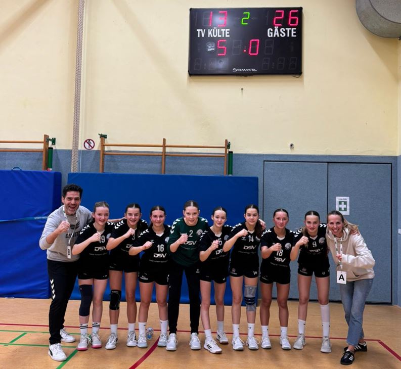 Am ersten Adventssonntag ging die Reise zum Tabellennachbarn TV Külte. Während unser Gastgeber mit 15 Mädchen an den Start ging, war unser Team mit insgesamt 8 Mädchen dünn besetzt. Doch für unsere HSG Mädels sollte das kein Problem darstellen. Den Start machte unser Team in der Abwehr, dort wurde unseren Gastgebern von Beginn an demonstriert, was für eine geschlossene Abwehrleistung auf sie wartete. Der Gegner kam kaum zu verwertbaren Chancen, was den tollen Zusammenhalt der Mannschaft wiederspiegelte. Das Spiel wurde nicht nur in der Abwehr von unserer HSG dominiert, auch die Leistung im Angriff war vorbildlich. Durch eine gute Spielübersicht und den Blick für die eigenen Mitspieler konnte unser Team einfache und schnelle Tore erzielen. Tolle Anspiele an den Kreis oder die Einläufer erfreuten Spieler, Trainer und Publikum. Somit stand es für uns zur Halbzeitpause bereits 5:13. Der zweite Teil des Spiels war eine Fortsetzung der vorangegangenen Halbzeit. Die Mädchen brachten konstant ihre Leistung, wodurch ein sicherer 13:26 Sieg gegen den Tabellenzweiten eingefahren werden konnte. Es spielten: Melissa Kejl (Tor, 11 Paraden), Bella J. Becker (6 Tore/ 5 A), Emina Cokokur (5T), Amelie Jaentsch (8 T/ 3A), Lene Andraos (1 T), Marie Henne (4 T/ 1A), Leni Schweitzer (1 T/ 2 A), Jette Mihr (1 T/ 1 A)